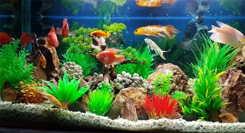- Không nên trang trí quá dày đặc vì sẽ chiếm diện tích bơi và giảm lưu thông khí.